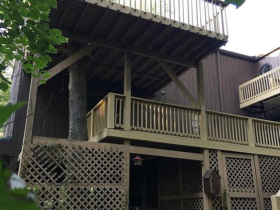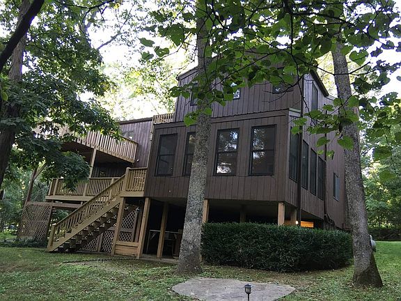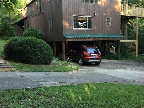 This home is a ''must-see'' on a nice wooded lot. This is a double lot that has been combined onto one large lot and has a large driveway. Master bedroom and bath were recently renovated. Large eat-in kitchen, formal dining room, laundry room and an expansive great room on the main floor. The beautiful sunroom has lots of windows for an abundance of natural light. This home is perfect for entertaining inside and outside or for enjoying large family gatherings. Features include 2 fireplaces, metal roof, 2-car garage and covered parking for 2 more vehicles. Permacoat was applied in previous years. Home exterior and decks were recently painted. The adjacent lot off of Doe Valley Pkwy is a natural run off and seller has been told it will not be sold or built on.