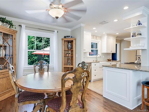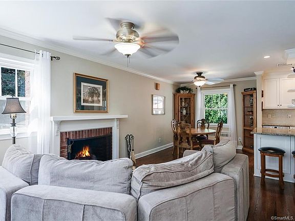 Exceptionally maintained & updated, this picturesque ranch has all you need to live a comfortable, easy lifestyle! Located on a quiet cul-de-sac in the University area, this home emits beautiful curb appeal that proclaims, "welcome home." Hardwood floors, an open floor plan, crown molding, interior glass doors & curved archways blur the line between modern & charming. Cozy nights by the fireplace, movie nights in the family room, entertaining in the kitchen, dining al fresco & lounging by the pool are some activities you're sure to enjoy here. The remodeled kitchen feats granite countertops, a bkfst bar, farmhouse sink, exposed shelving & SS appliances. Open the glass door to the family room, a sweet surprise tucked away at the back of the house! Built-in shelves & counters (perfect for an at-home office, homework area or craft station), a windowseat, access to the backyard & a full bathroom make up this sun-drenched room--sure to be a favorite spot for the next homeowner! 3 bedrooms & another full bathroom finish off the rest of the house. An in-ground pool, one car garage, shed, patio & adorable archway set the stage for a tranquil, private backyard. The roof is less than 10 yrs old; AC units are less than 5 yrs old; the hot water heater is new! This charming, updated home is close to Black Rock Tpke, downtown Fairfield, schools, restaurants, the train station, beaches, parks, highways & much more. Enjoy easy living in a friendly neighborhood only 63 Sunset can provide!