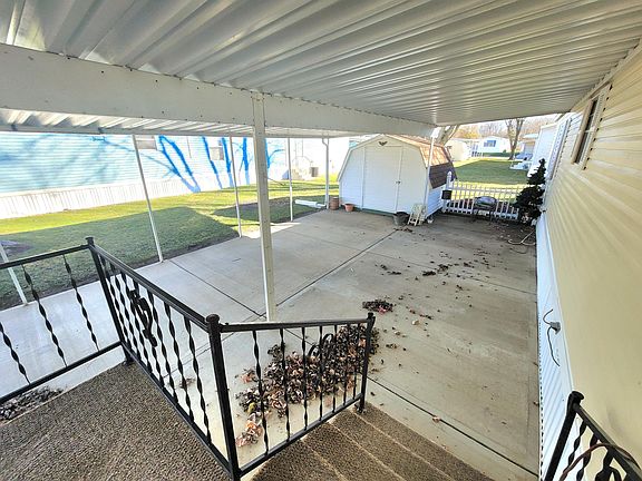 Welcome to one of Clark County, Ohio's most cared for mobile home communities! Shrine Road Mobile Home Park is perfectly located to easy access to highway, shopping and more. Situated at the end of Sunset's cul-de-sac, this 1989 Danville model has been well maintained and is ready to move into. Extra long carport concrete patio for a covered parking or gathering. There is an over sized shed for stow away items. The deck leads the way to the front entry. Plenty of room for lounging. Inside you will preview an open floor plan with split bedrooms; each with their own full bath. The living room is cozy with an electric powered stone faced fireplace. Blending well into the full sized eat-in kitchen, you have ample entertaining room. Loads of cabinetry and counter space. All appliances to convey ( newer refrigerator). The utility room has access to a back exit to the outside. Washer & dryer included.The main en-suite is large and has double closets. The private full bath is complete with garden tub. The 2nd bedroom has a connected full bath. Outdoors enjoy landscaped islands full of perennial flowers and other plantings. IMPROVEMENTS: (per seller) Roof 10/19. Water heater 11/14. Central Air -8/17& updated furnace.