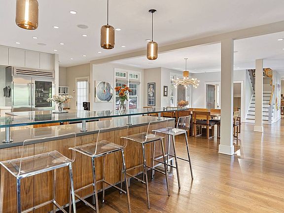 Welcome to 63 Taunton Lake Road, a waterfront property on Taunton Lake. This one of a kind custom home was built in 2007 by Design Academy and offers over 5000 square feet across three stories with wonderful views of the lake. This sophisticated home offers the perfect space for living and entertaining with the open gourmet kitchen, spacious dining area, and great room with floor to ceiling fireplace. The billiards room has a full bar, including a bar sink and ice maker, and full sound system that is available throughout the interior and exterior of the home. For those who enjoy a nice cigar, the den is airtight with an industrial fan. This room opens to the sunroom via glass sliders with walls of windows overlooking the lake. A private room tucked away on the main level makes the perfect office or den. The luxurious master suite has a large walk-in in closet and custom built-ins. The master bath offers an infinity soaking tub and beautiful walk-in shower. Each of the additional 4 bedrooms are en-suite. The lower level features a game room, gym and two of the bedrooms. The rich flooring and doors are all made of walnut and this house is filled with special architectural features. This home is the ultimate in lakefront living featuring an oversized deck with fireplace and grilling area off of the main level overlooking the infinity pool with spa. A double staircase leads to the pool-level patio with another fireplace. At the water's edge is a boat house and large dock.