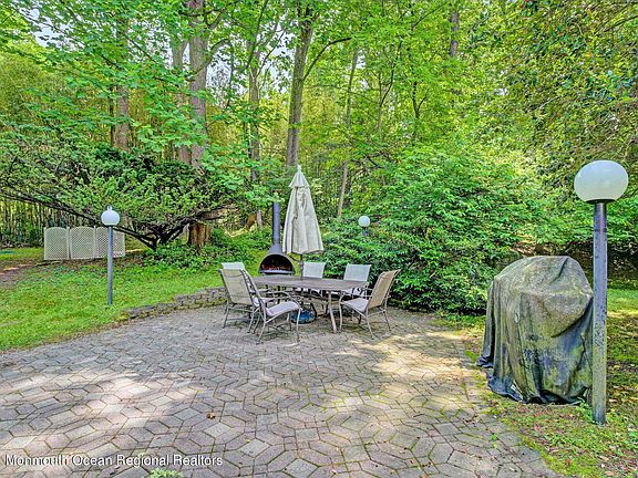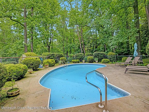 Surrounded by million dollar homes, this beautiful Holmdel Colonial is on approx 1 acre of tranquil land. This spacious home has 5 bed (5th bed has a separate entrance perfect for home office), 2.5 baths, Inground pool, Formal Living Rm and Dining Rm, Family Room, full finished basement plus PUBLIC Water and PUBLIC Sewer. Relax at the end of the day in your own sauna in the Owners Suite along with a Sumptuous Master Bath with stand alone shower and jetted tub! Eat in Kitchen w SS appliances, sliders to yard, ceramic flooring and granite counters. Gleaming Hardwood flooring in most of the home. Privacy abounds in the backyard with paver patio, kidney shaped inground pool and BBQ. Lots of closets and storage. Fabulous Holmdel Schools, close to GSP, shopping, great restaurants.