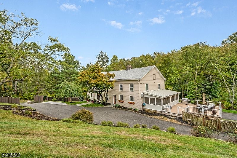 Wonderfully renovated & maintained post and beam 19th century barn surrounded by pristine parklands on the coveted east side of Mendham Twsp - a truly remarkable, one-of-a-kind home w 12 rooms, 5 bedrooms, 4 full &1 half baths ,2 fireplaces, newly renovated contemporary designer kitchen with roomy eat-in dining area and open floor plan family room, comfortable living room, modern dining room, three-season porch, two bedrooms with en suite baths on the second floor including a gorgeous, completely renovated primary bath and full-sized dressing room. This exceptional home melds old world craftsmanship with today's modern smart home conveniences creating a superb floor plan comprising 4,300 square feet of commodious living space on the upper two floors, plus a sprawling finished lower level with walk-outs to a delightful rocking chair rear porch, entertainment, recreation, an home office areas, plus a bedroom suite with full bath, outdoor features include a sparkling in-ground swimming pool, composite deck, two-car attached garage with wrap-around driveway, and a 5.2 acre showcase property.