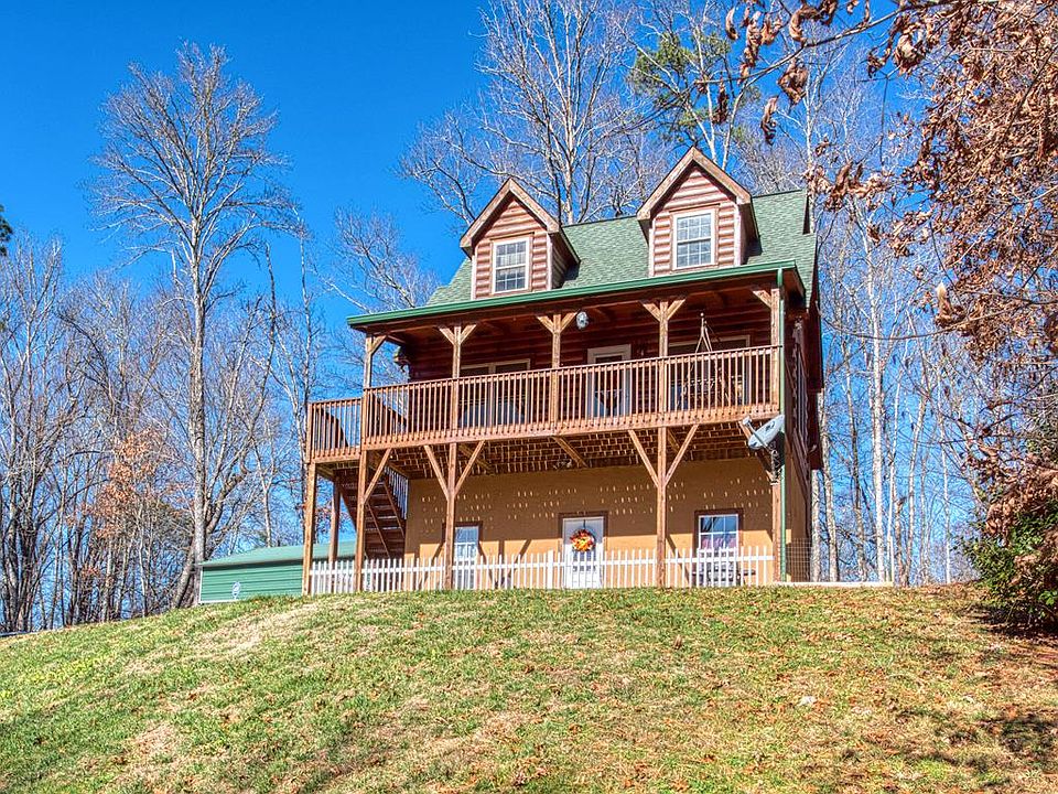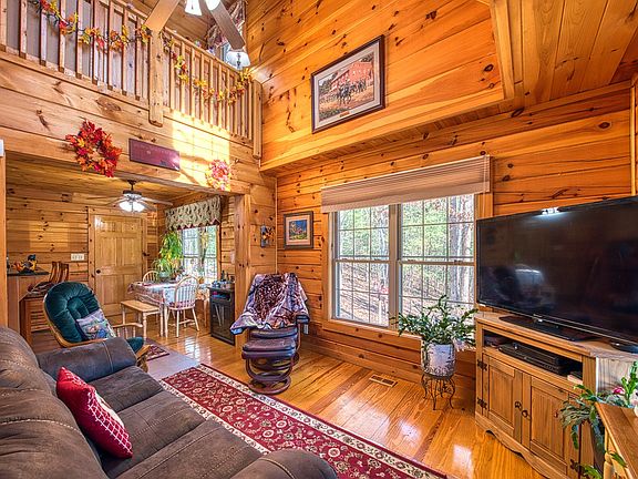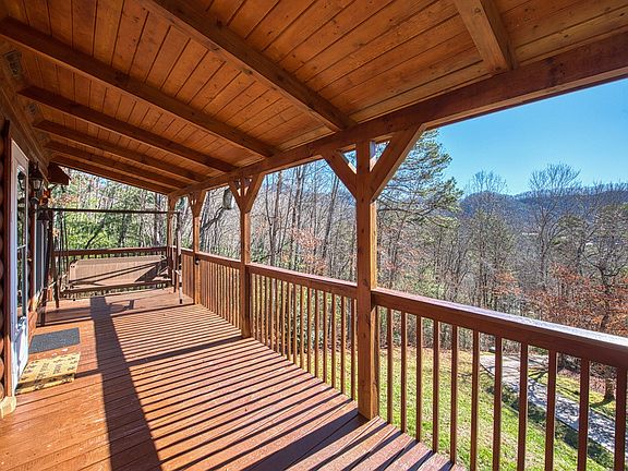 ENJOY MOUNTAIN LIVING AT ITS FINEST while sitting on the covered porch of this lovely and well maintained 2BR/2BA log sided home during a cool summer evening while enjoying the delightful pine scented air and serene quiet sounds of mother nature. The home sits on 3.96 acres, which can be subdivided into 2 additional lots, in the private, quiet and serene community of Camp Creek. The lower level of the home features an apartment with kitchen, living area, bedroom and full bath and would be a great Income Producing opportunity as a air b&b, vacation rental or long term rental. Additional features of the home include a large fully covered front porch, hardwood flooring throughout, a fenced in doggy run, and a 2 car carport. Detached Storage Shed does not convey.