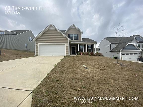This 2663 square foot single family home has 4 bedrooms and 3.5 bathrooms. This home is located at 63 Tradewind Ct, Garner, NC 27529.