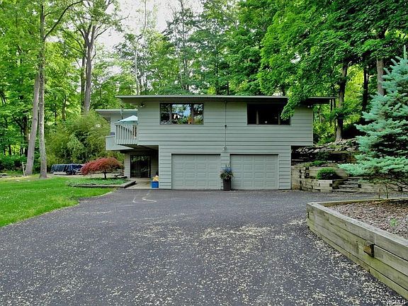 Absolutely stunning 5 BR Contemporary sitting on just under an acre of beautiful property. The backyard, more like an oasis, offers a plush lawn, expansive paver patios, specimen plantings and mature trees. Inside, gleaming hardwood floors adorn the entire first level complimented by floor to ceiling windows and planked cathedral ceiling. Kitchen boasts 42" cabinets, stainless steel appliances, center island, brand new back-splash with decorative inlay and clean quartz countertops. Eat-in area opens to expansive deck w/ panoramic view of the yard and seasonal mountains views. Master bedroom with walk-in-closet and newly renovated en-suite bath. Two additional bedrooms and remodeled bathroom complete the 1st floor. Lower level maintains spacious family room w/ fireplace and raised brick hearth. Family room grants access to the backyard and lower level patio. Additional bedroom, gym, storage and powder room complete this lower level. New roof, newer driveway, and so much more!