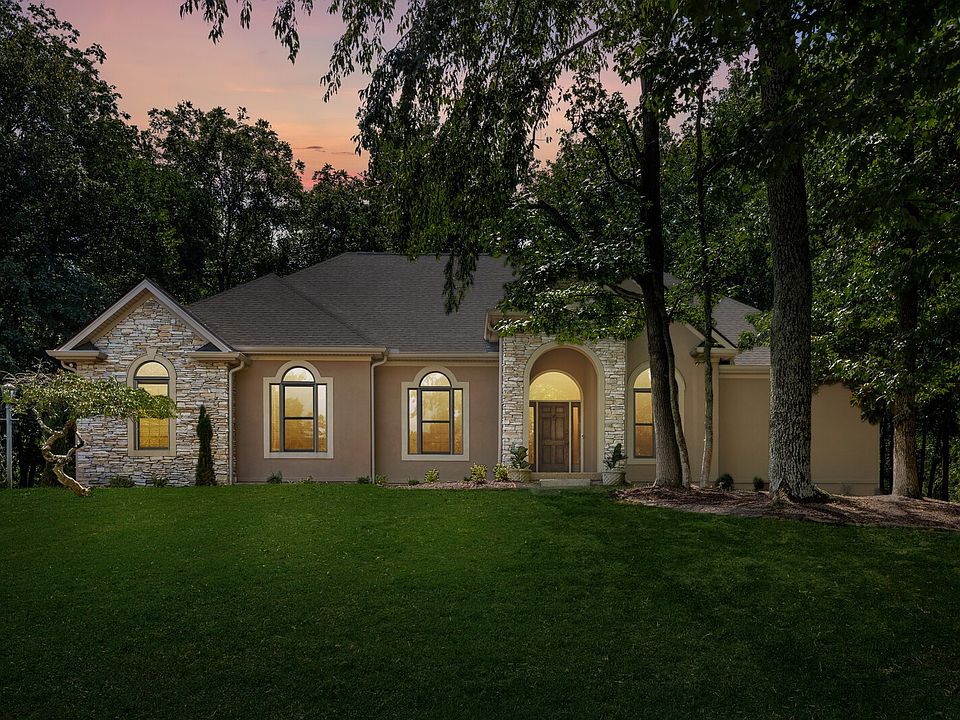 Imagine mornings spent in the quiet of your own wooded haven, light streaming through arched windows as you sip coffee on the patio. This custom Hendersonville home, nestled in a quiet cul-de-sac located in the highly sought-after Indian Lake Forest subdivision, was designed with ease and comfort in mind, making it a natural fit for life’s next chapter. From the moment you step through the stone entry, the floor plan unfolds gracefully on a single level, laden with unique and beautiful custom touches. Tall ceilings and hardwood floors lead to a French-door study — a flexible space for reading, working from home, creating, or simply a quiet retreat. The kitchen, with its central island, featuring a gas stove, and bay-window breakfast nook, feels warm and inviting, with room to cook, gather, or enjoy a simple meal for two. The main-level primary suite, with coffered ceilings, is your private sanctuary, complete with a spa-like bath offering double vanities, a walk-in shower, heated floors, and a jetted soaking tub, as well as roomy double closets. The split floor plan, for the utmost privacy, features two more guest bedrooms, each of which features its own ensuite with heated floors. A spacious side-entry two-car garage provides secure parking plus additional storage. Above the garage is a sizable unfinished space just waiting for you to create a private guest suite, multigenerational living opportunities, or the den of your dreams with plenty of space for collectables or memorabilia.