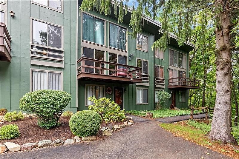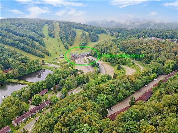 Spend year round having fun in this turnkey 3 bedroom plus loft. Redone kitchen with stainless steel appliances. Updated full bath with Corian countertops. New flooring. Cathedral ceiling with walls of windows overlooking ski slope. Completely turn key with brand new HEAT PUMP, privacy wall and washer/dryer. Huge loft with king size bed! Directly across the street from the lodge. Hiking trails right outside your door! Private backyard with wooded view. Low HOA fees. Association pools, tennis courts, basketball courts, park, trails and year round social activities. Heat pump also provides air conditioning to main floor.