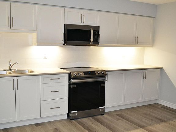 Last unit available! (If ad is still up, it is available). Brand new building at the corner of Vine St. S. and Welland Ave., St. Catharines, within easy distance to highways. Located within minutes of all the downtown core as to offer. Never lived in! Three-storey, 9-unit building with elevator, wheelchair accessible. Two bedrooms, 1 full bath, open concept living/dining room, vinyl-plank and tile flooring throughout, subway-tiled kitchen backsplash with undercabinet lighting, 5 new high-end stainless steel appliances, including dishwasher and in-unit stacked laundry, lots of storage and closets. All blinds and fixtures brand new, LED lighting, water line to fridge, neutral colours throughout, on-site parking, 2nd and 3rd floor Juliette balconies. Magik Pak Heating Systems and ERV- great for those with allergies! Unit left are approx. 750 sq. ft. $1850/month + hydro Two-year lease agreement preferred but negotiable, first and last required. Occupancy April 15. Lease Term is 2 years.