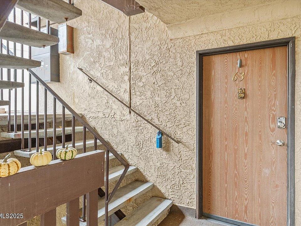 This is a must see condominium. It offers a spacious open living area with a fireplace and an above average view. Two bedrooms and one bath. Convenient location just north of Reno, a short drive to the university. Features include newer paint within the last year. Newer carpet and LVP Flooring, new baseboards, all installed just under two years ago. Upgraded bathroom fixtures and shower surround. Kitchen has been upgraded with newer fixtures and appliances. All installed just two years ago. HOA covers heat and air conditioning, trash and water. Along with common area maintenance and the pool. Included is one covered parking space and storage shed. Additional parking throughout the parking area.