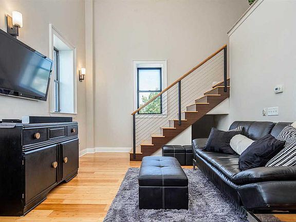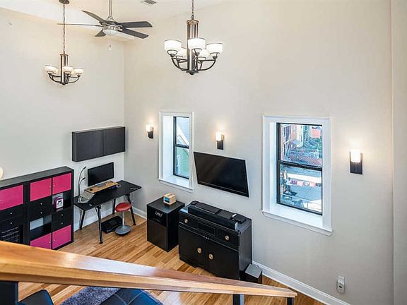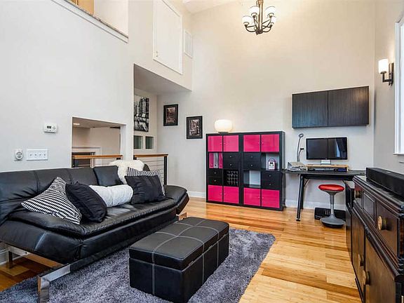 Spacious one bedroom corner loft style, one bath condo in Victory Lofts with unique multi-level layout and soaring ceilings w/ partial city views. Maple kitchen features breakfast bar, granite counters and stainless appliances. Other features include elegant bath with double sinks, lots of closets/storage, eco-friendly bamboo floors, washer/dryer in unit, parking and gym.