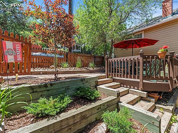 Let’s talk about infrastructure in an already adorable home! This house has a new roof with new trusses, new wood flooring in the primary upper bedroom, new furnace, new hot water heater, and, best of all, a new sewer line! Original woodwork and a built in china cabinet in the dining room. Laundry is downstairs with a new washer/dryer that is perfectly sized for the house. The second upstairs bedroom is currently non-conforming: opened to the primary bedroom, but could easily be re-drywalled, or accommodate French doors. The basement provides an additional living space and bedroom. This house sits back just enough from the street to offer privacy, and is ready to go with charming front decks, lots of gambrel oaks, a spot for a grill, a side patio, and gardening area. New privacy fencing with custom iron work. Drink your coffee on the “Juliet” balcony overlooking Manitou Avenue and Ute Pass while listening to the summer music at Soda Springs Park, or any of Manitou's famous parades. One parking place has been built onto the property, and the city provides 2 additional passes. Walkable to downtown Manitou’s restaurants, parks and shops. If you want Manitou living, this is the spot.