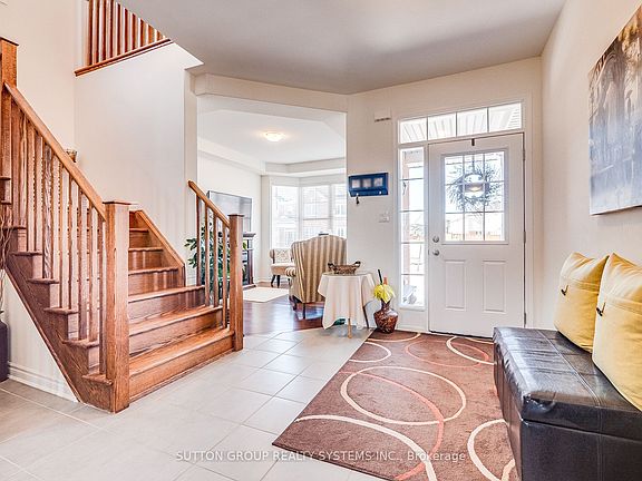 Welcome to this fully upgraded double-car detached home, offering modern luxury and comfort. The main floor features a gorgeous kitchen with granite countertops, a stylish backsplash, extended cabinets with crown molding, a spacious pantry, and tiled flooring. Enjoy the warmth of the great room with a Gas fireplace, complemented by hardwood floors throughout the main level. A separate living, dining, and family room provides plenty of space for entertaining and family living, all enhanced by 9-foot ceilings. The second floor features a large loft, a bright and spacious master bedroom with a walk-in closet, and a spa-like 5-piece en-suite with double sinks and a deep soaker tub. Step outside to the backyard deck overlooking a private ravine lot with no neighbors, behind the perfect retreat for relaxation and nature views. The walkout basement offers additional convenience and potential living space. Located close to the Toyota Manufacturing Plant, Cambridge Smart Shopping Centre, Hwy 401, schools, parks, and a nearby pond, this home combines style, privacy, and an unbeatable location.