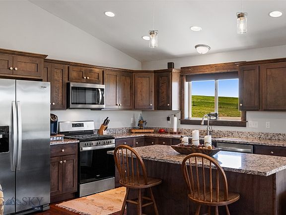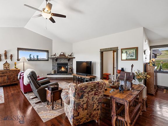 Welcome to this beautiful and well-maintained home located just outside Three Forks, offering 2,616 sq.ft of living space on over 2 acres of land. This stunning residence features 4 bedrooms plus an office and 3 full bathrooms, providing ample room for growth and comfort. Step inside to find custom-stained hardwood floors, elegant soft-close cabinets, and sleek granite countertops. The stone fireplace and built-in TV room media center add a custom touch and coziness to the living space. The large, vaulted ceilings in the main area create an open and airy atmosphere, perfect for entertaining or relaxing. The exterior boasts a paved driveway leading to an oversized 2-car garage with bonus attic storage. Don't miss the opportunity to make this exceptional property your own. Call your agent to schedule a showing today! Built with helical piers.