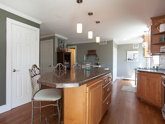 This East Berlin Colonial is quintessential New England! Wonderful curb appeal with welcoming front porch! 3 bedrooms and 2 full updated bathrooms with room for everyone. Spacious updated eat-in kitchen with stainless appliances and an oversized island opens directly into your dining area and living room allowing for effortless entertaining! Step outside the slider onto your refinished deck, which is perfect for entertaining, overlooking the 2 car detached garage and fire pit to enjoy with a level yard for plenty of fun. New roof and gutters, hardwood floors throughout, updated lighting, neutral paint and new paver walkway makes this house move in ready. Prime location walking distance to Wilcox Park and Elementary School!