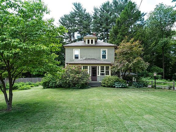 Sunny, traditional American Four Square in one of Florence's most sought after neighborhoods. Within a short walk to Florence Village you will find this charming 3 bedroom, 1.5 bath home. Bright and cheery first floor with living room, dining room and study featuring beautiful wood work, hardwood floors and a modern open floor plan. Spacious kitchen with sweet breakfast nook overlooking the large, flat backyard. The second floor has three comfortable bedrooms and a full bath. Well maintained and updated with new roof and many newer windows. Beautiful yard with perennial gardens and Goshen stone patio. The cozy enclosed front porch and rear deck make this home a nice place to relax just steps from the Mill River and short drive or bike ride to downtown Northampton.