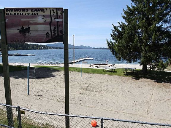 Secondary lot at Diamond Lake with Diamond Lake Beach Club membership included. Walk about 200 yards to the key access only sandy beach. Flat level lot, bring your RV, mfg home, or build your lake home w/ convenient access to scenic Diamond Lake. County maintained road access. Community water, sewer, fiber optic high speed internet are available to you at the street. Electricity hookup is paid and installed. Hookup fees apply. Beach club membership is $150/year to access over 700 feet of sandy beach, BBQ, volleyball, swimming & more.