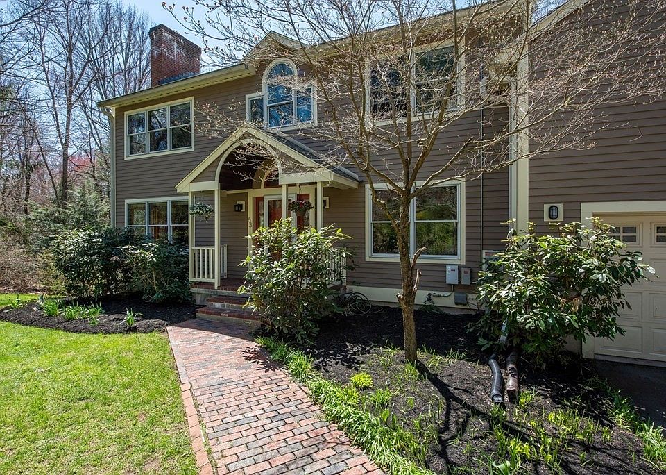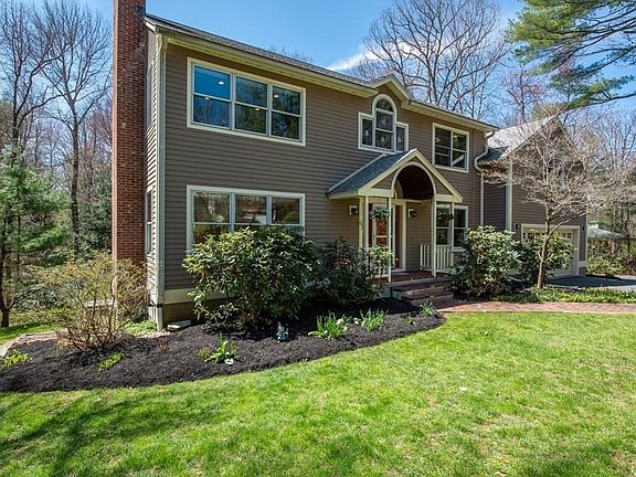 One of a kind in Amherst Woods. Six bedrooms, four bath Colonial in a private location yet close to all area amenities. This property includes professional landscaped grounds on almost an acre of land, attached 2 car garage, stone patio, two decks, balcony, solar panels, and a screened porch. Inside you will find a formal entry, large living room with fireplace, dining room, open eat in kitchen with unique tile design, pantry, art room/kids work station, mud room, full bath, and first floor bedroom. Upstairs includes 3 large bedrooms, full bath, main bedroom en suite with full bath/soaking tub and attached nursery or sitting room. Walk up attic. Wood floors throughout and beaming with natural light. Downstairs there is more... full bath, laundry, family room with walk out to the patio, office, exercise space, and a sixth bedroom. Plenty of room for everyone. A beautiful property!