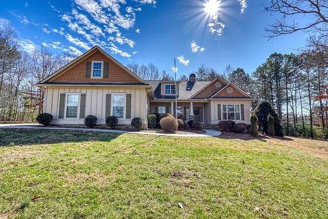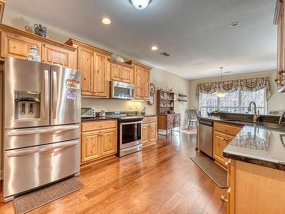 HIGHLY DESIRABLE! RANCH HOME LOCATED   IN OWEN GLEN. Watch the sunset from your front porch with a VIEW in this immaculate traditional style home, all on one level! Three bedrooms, 2 and half baths plus den/office SUNROOM, split floor plan. Beautiful hardwood floors, stone fireplace, high ceilings with tray ceiling in Living Room. Dining room, eat in kitchen with granite, bar, stainless appliances, mud room/laundry leads right out to two car oversized garage with storage shelving and cabinets, extra refrigerator and attic access. LIGHT AND BRIGHT with lots of windows and spacious sized rooms with over 2500 sq.ft. MASTER with sitting area and spa bathroom with separate vanities, tub and shower, two walk in closets. SUNROOM for office or extra living space. Partially covered back porch and deck with a fenced area for your pets. Located in gated community of Owen Glen with golf available, club house, pool ,tennis courts, pickle ball court. Close to LAKE and marina and minutes to TOWN . GREAT  COMMUNITY AND  LIFESTYLE!!