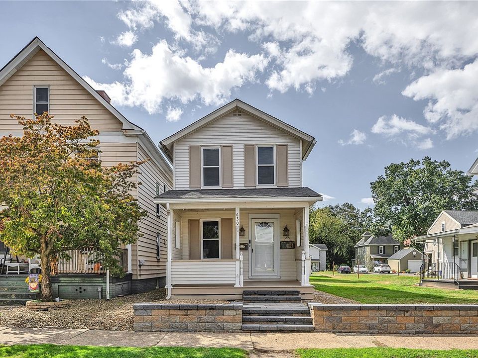 Step inside this charming and spacious two-bedroom home, located in the heart of New Brighton. The main level features a generous living room and dining area, perfect for relaxing or entertaining, as well as a freshly updated half bathroom! The bright, updated kitchen offers ample cabinet space, new appliances, and opens to a cozy side porch. Upstairs there are two bedrooms and beautifully updated bathroom. Outside, you'll find a large, flat yard stretching from front to back, complete with a new patio and walkway. Additional highlights include a well-lit, large two-car garage, and a new sewer line installed in September 2025!