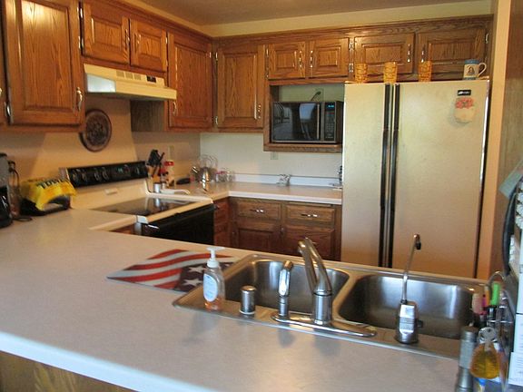 De Pere condo w/ very unique open concept floor plan. Message center, snack bar, huge pantry in appliance kitchen w/ laminate floors that flow into dining rm w/ patio doors to upper deck. Both bdrms w/ double closets & slate floors in foyer and bathrooms. Family rm filled with natural light & entertainment center in exposed LL. 2+ st insulated & heated finished garage w/ workshop & cabinets.