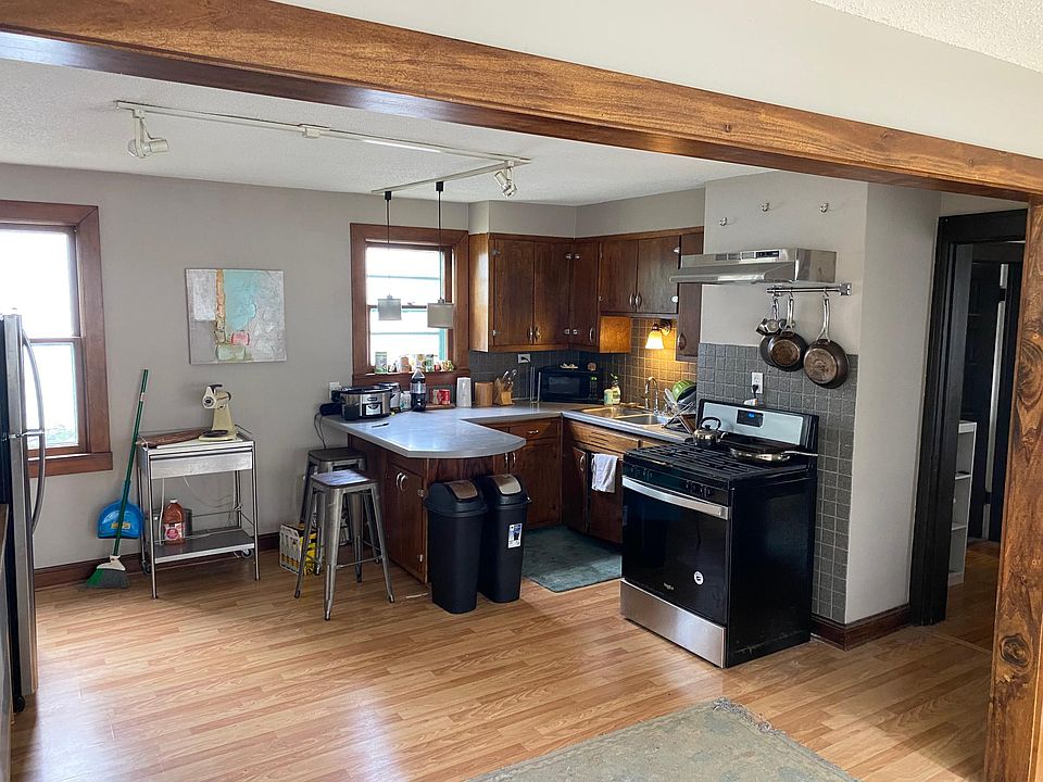 Beautifully updated duplex with central air, sun drenched four season porch, new stainless appliances , hardwood floors, 1 full barhroom plus half bath in the basement along with free private laundry and a den or office. We also include a garage spot and a 3 season porch. you can walk to Sociable Cider Werks, Spyhouse Coffee, Ombibulous or bike anywhere. Rent shown includes a discount for you doing the small lawn and snow on the sidewalks. Owner pays Heat, gas, water, sewer, and trash.