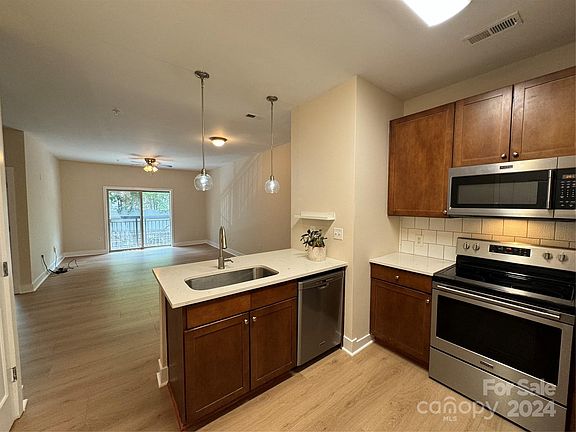 Modern living in the heart of Wesley Heights! This stunning condo is located on the 2nd level of Skybridge Terrace and offers the best of city living. The unbeatable location is close to shops, restaurants, and popular area attractions. Easy access to I-77. Adjacent to Frazier Park and Wesley Heights Greenway. The spacious living room is perfect for entertaining guests, and the Juliet balcony provides plenty of fresh air with a quiet setting away from the street. Truly move-in ready: This condo boasts central HVAC, gorgeous new flooring, and stainless steel appliances. In addition, the kitchen fridge, washer, and dryer are all included! Enjoy peace of mind with secure entry by FOB key, an elevator, and a parking lot. Don't miss the opportunity to experience the ultimate urban lifestyle in this fantastic condo!