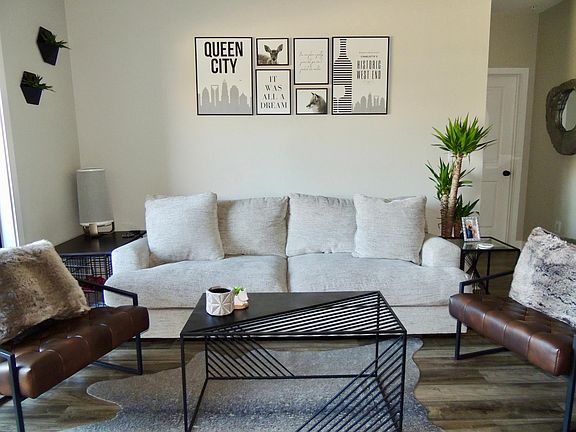Incredible 2B-2BA condo at the edge of Uptown Charlotte. Stylishly renovated with new luxury flooring, black stainless steel appliances, stunning granite countertops, new light fixtures throughout, 2 large walk-in closets AND an exterior storage unit. Enjoy cooking and hosting in a fully renovated kitchen with a massive granite island, custom granite waterfall backsplash and sleek black cabinetry. This luxurious condo boasts unimpeded views of the Charlotte skyline. A mile from center city, this home is within walking distance of Bank of America Stadium (great for tailgating), multiple local breweries and countless restaurants. It also has direct access to Stewart Creek Greenway that includes nature trails, beautiful parks for play or exercise, and a walking path straight to the heart of Uptown. Renters will enjoy onsite parking for two vehicles, including one gated garage space. Home is staged for photo purposes only, though some furnishings may be available. Email for more information. Owner will pay for water/sewer service, community trash service and HOA dues. No smoking in home or on balcony.