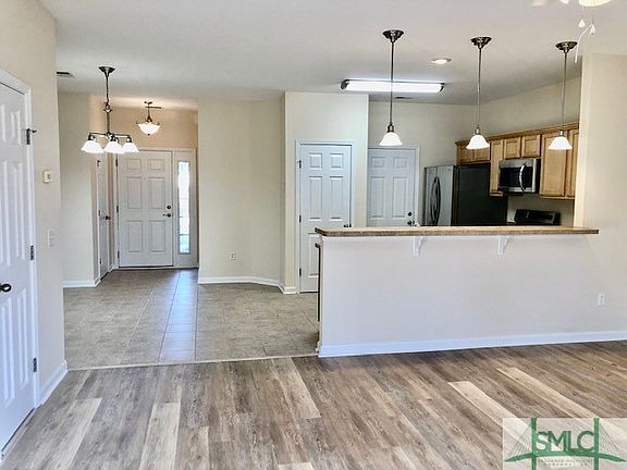 NEW! NEW! NEW! Paint, Flooring, appliances are all brand new! Kitchen and 1/2 bath with open living area downstairs. Three bedrooms/2 baths upstairs. Just across the street from additional parking and mailbox. Really convenient in-town location. The comminity has a pool and playground. Convenient to I-95, Savannah and Hinesville. Richmond Hill school, of course.
