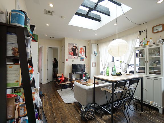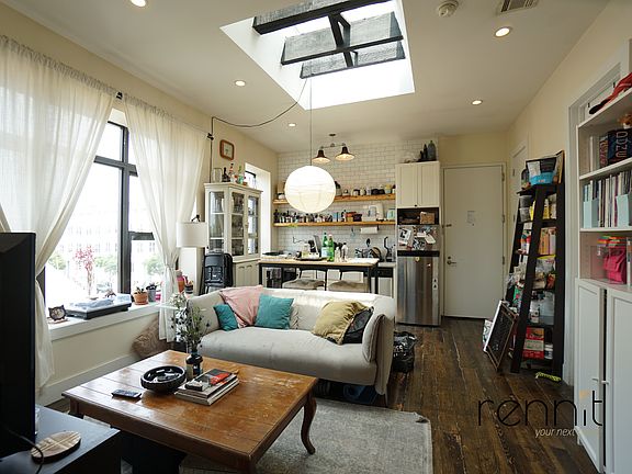 Skylights and Corner Windows! Super bright, sunny 3 bedroom/1.5 baths apartment in Prime Bushwick! - Corner building with windows in the living room. Awesome loft feel unit with tall ceiling and so much sunlight! 3 Spacious bedrooms, Cool open concept kitchen with modern updated appliances, living room with oversized windows allowing tons of natural light in, 1.5 bathrooms, hardwood flooring, Video intercom system and central air and heat, in Building Laundry Room, Showing by appointment only