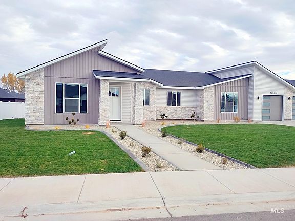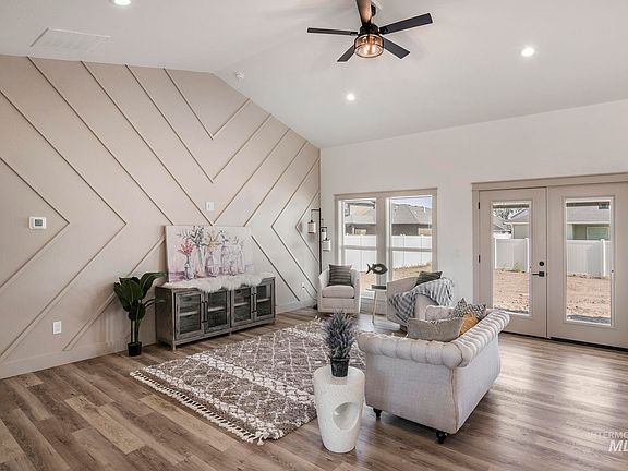 This contemporary home is a must see. Modern elements seamlessly intergraded into this classic floor plan. The vaulted ceilings in the open concept living space gives off a spacious feel. Large kitchen island with gas stove elevate the kitchen design. Walk in pantry with appliance outlets is also a bonus feature. The master suite boasts a his and hers closet, soaker tub and custom tile shower with elegant tile selections. The covered back patio overlooks a mostly fenced in yard. Full landscaping and sprinklers are included!