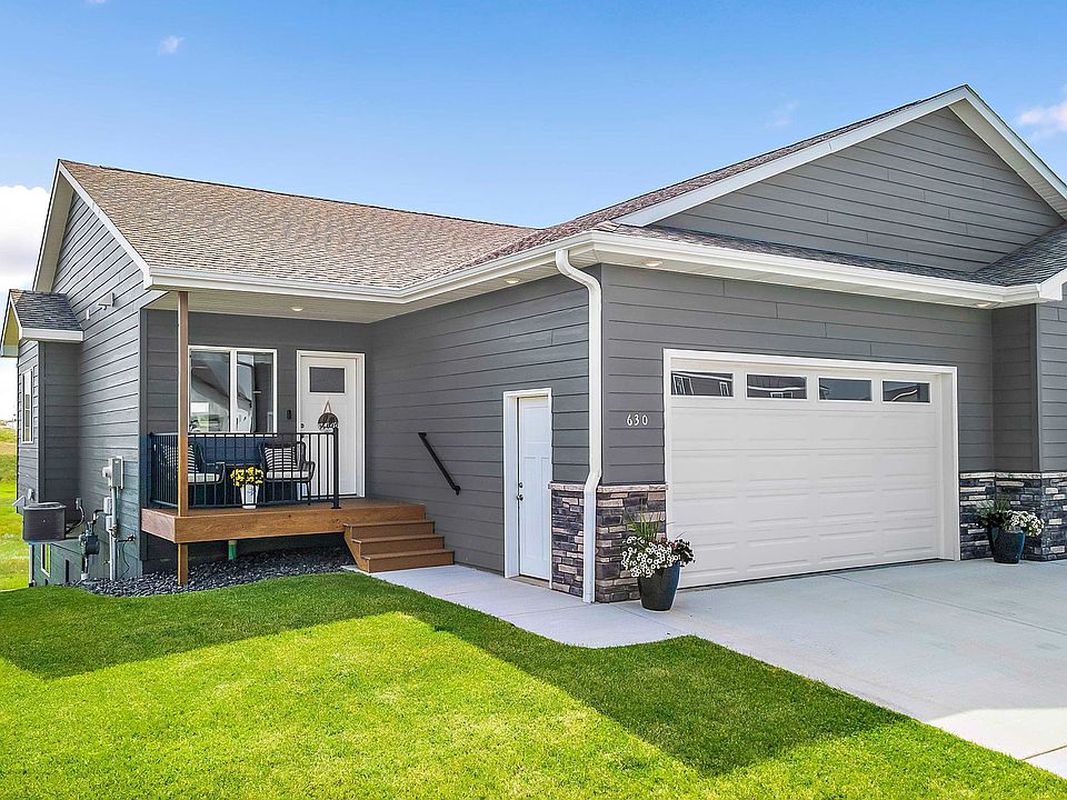 This modern townhome boasts an open floor plan with three bedrooms, two and a half bathrooms, and a two-car garage. The main floor presents a spacious kitchen with a granite breakfast bar, a dining room, a living room, and a master bedroom suite complete with a large walk-in closet and a step-in shower. Begin your day by indulging in the breathtaking sunrise on the back deck. The walkout lower level encompasses two additional bedrooms, a bathroom, a family room, and an office or storage room. Convenient access to I90 and Elk Vale Road. Listed by Cody Brown, Engel & Voelkers Black Hills, 402-910-3553.