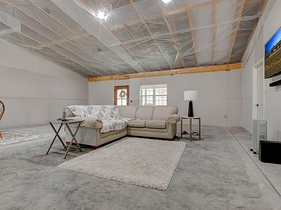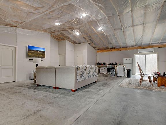 Please note that the sellers are selling as is, they will not be finishing the construction. Discover this well built and insulated under-construction barndominium nestled on 5.56 surveyed acres. Boasting 11-foot ceilings, the 1,428 sq ft space is a blank slate and ready for your imagination. The primary bedroom is spacious with access to a large bathroom and walk in closet. The heart of the home is a spacious living featuring a 36,000 BTU mini-split for customized climate control. Create your dream kitchen, design a luxurious lounge, or craft a cozy retreat - the canvas is yours to complete. The laundry/mud room is large and stubbed in for a bathroom. Attached is a convenient 2-car garage, providing secure parking and additional storage space. Adventure enthusiasts will appreciate the 30 amp RV hookup with water, promising a seamless transition from the road to your haven. Embrace the outdoors on the expansive 5.56 acres, offering a canvas for landscaping, gardening, or recreational pursuits.