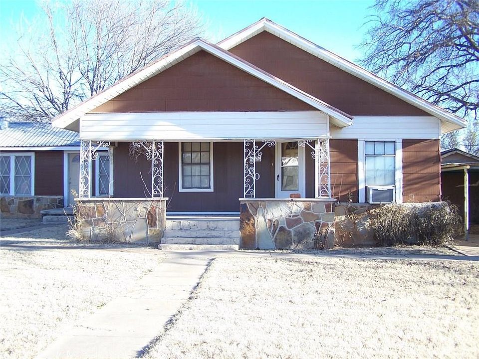 Nice Older 1244 sq ft 2 BR 1 bath home on corner lot. Living room, dining, and kitchen area with separate utility room. Large fenced back yard with metal workshop and carport. Two separate carports and workshop or storage bldg detached from front side of home. Nice front yard with small rock fence.