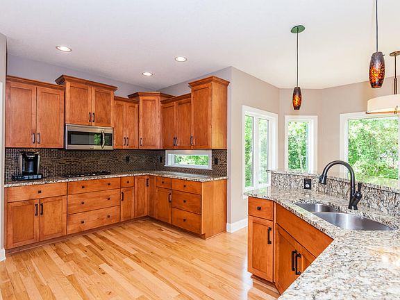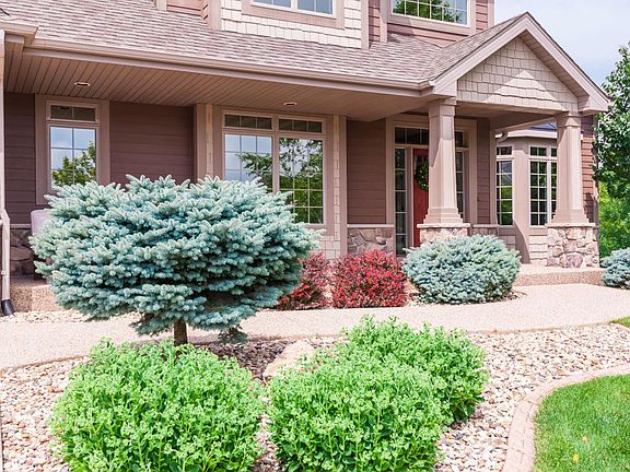 Amazing walk-out 2 story...largest wooded lot in cul-de-sac! Pre-stressed garage w/access door (over 2000 sq ft of garage) Gourmet kitchen with all the upgrades you would expect, 2-story great room w/windows & built-ins galore. Large mudroom, 12' ceiling in study w/French doors, formal dining, walk-out family room w/full wet bar, 2 fireplaces, maint-free deck, concrete patio. Guest set-up in LL., Directions Hwy 14 West. Rt on 10th Ave, Byron 1st stop light. Stay on 10th Ave thru traffic circle. Turn left on Somerby on 9th, left onto Somerby Gateway and left onto Parkway. Donnington is first cul on left.