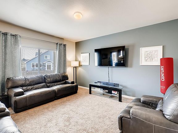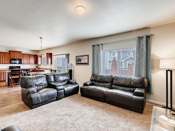 Beautiful 4 bedroom 3 bath open concept Home located minutes away from I-25, parks/trails and recreation. Spacious kitchen with island and granite counter tops, eat in space for dining table. Open to family room and patio, great for entertaining. Landscaped back yard with play-set. Large Master bedroom with huge walk in closet and 5 piece master suite. 3 additional bedrooms on the upper level with a bonus space perfect for office, play area, or reading nook. Large Laundry room also on upper level. This home has lots of space! Great schools and friendly community. Close to great dinning and Carbon Valley Recreation center.