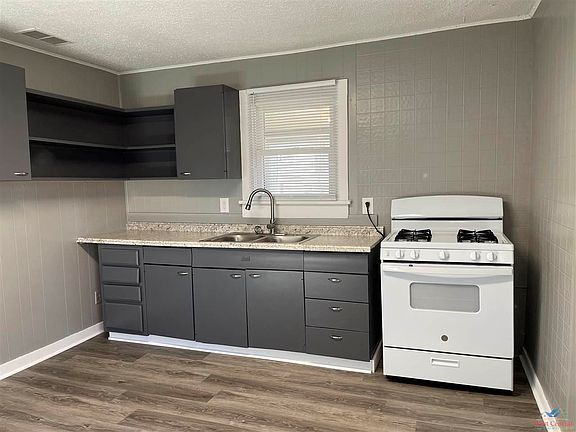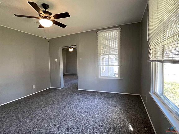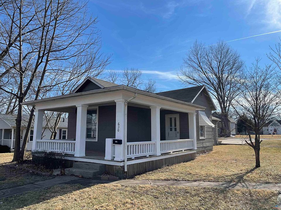 Move-in ready! This 2 bedroom, 1.5 bath home is perfect for a starter home or for downsizing! Spacious living room and formal dining room. Neutral colors throughout with fresh interior paint and new carpet. The kitchen offers new vinyl flooring, some open shelving, and a gas stove that stays. Additional upgrades include new tile shower surround and bathroom vanities. Sits on a corner lot with covered wrap around porch, storage shed for additional storage, and space for a patio or off-street parking. Located close to Downtown Sedalia, dining, grocery, and Smith-Cotton Junior High. Come take a look!