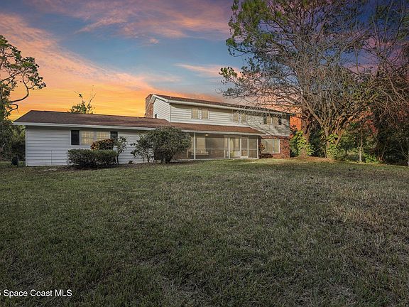 Welcome to this beautifully renovated two-story residence offering 3,055 sq. ft. of living space under A/C, set on a private 2.01-acre lot in desirable North Merritt Island. This spacious home features 5 bedrooms and 3 full bathrooms, including four bedrooms and two baths upstairs, plus a downstairs bedroom—ideal for guests or use as a home office—along with a full bath. Completely renovated in 2018, the home includes re-piping, a newer roof, impact windows, and closed-cell foam insulation. A new septic system was installed in 2021. Additional enhancements include an asphalt driveway, screened front lanai, and a newly rebuilt upstairs rear deck—perfect for enjoying spectacular rocket launches right from home. Inside, you'll find an inviting floor plan with an eat-in country kitchen, formal living room, dining room, family room, and indoor laundry room. The washer and dryer convey. The home also offers two fireplaces and a 2-car garage. The expansive lot provides plenty of room for a pool, and horses are permittedgiving you the freedom to create the outdoor lifestyle you've dreamed of. With generous acreage, privacy, and modern updates, this property blends comfort, function, and space in one exceptional package.