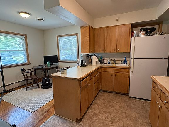 Large 3BR/2BA corner house on Jefferson and Dodge St. with attached garage. Sunny living room, dining room, 2 bedrooms on the first floor, finished basement with 1 bedroom, a bathroom, washer, and dryer. Charming bathroom with bathtub. Carpet in the living room, hardwood in the dining room, bedrooms, and vinyl floors in kitchen and bathrooms. The tenant pays all utilities. Walkable distance to campus. Bus stop on Dodge St.