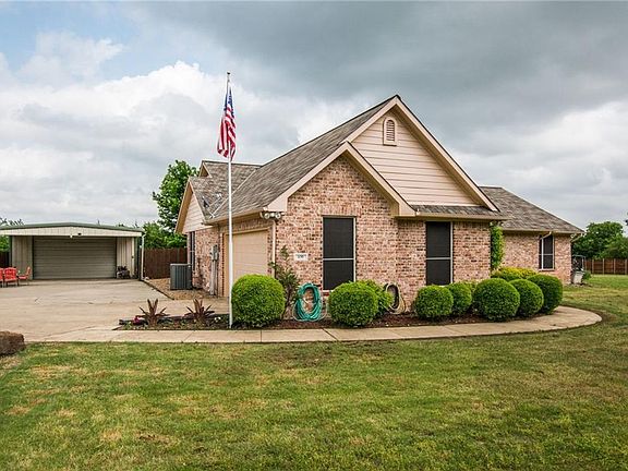 Wonderful 1 story home on 1 acre with a 24' x 36' workshop and two car carport. Wood Fenced back yard with additional land on other side of fence, backs to privacy row of trees. Enclosed screen porch with hot tub. In ground storm shelter. Two Living areas, 2 Dining areas, Kitchen and 2 Full and 1 Half Bathrooms have granite counter tops. No carpet; all tile or wood like laminate floors. Wood burning fireplace; attic radiant barrier. Recent improvements include solar screens, additional attic insulation, many windows, sprinkler system, Heat Pump, many trees in front and back yards, landscaping and composition roof. Metal workshop has electricity and air conditioning unit.