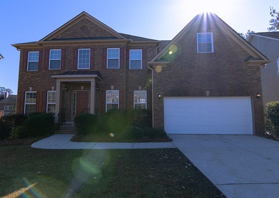 Welcome home to this stately home on full unfinished basement. Bright entry welcomes you to this traditional home with living/flex room and separate dining room at the front of the home. Back of the home has dramatic 2-story family room that is completely open to large island kitchen with rich wood cabinets, granite countertops, stainless steel gas range, dishwasher and microwave. Extra flex room on main level can be 5th bedroom. Half bath and laundry room finishes the main floor. Double staircase to upstairs owners suite has deep tray ceiling, sitting room, separate vanities, jetted tub and tiled shower. Bedroom 2, 3 & 4 are spacious, have ample closets and share a full bath. Full unfinished basement is stubbed for a future bath and ready for your imagination! Great outdoor space includes wood deck, patio and large fenced yard. Close to hwy 78 and Floyd Rd SW.