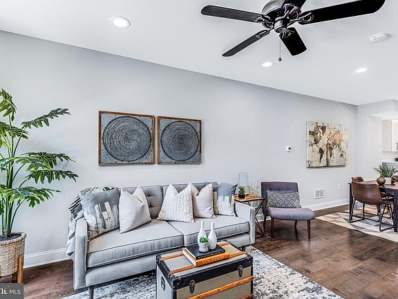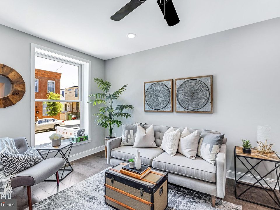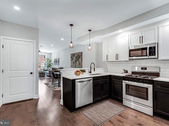 Spectacular new Brewer’s Hill renovation by WePlace Development. Welcome to 630 Fagley Street, a gorgeous open concept home with modern sophistication. 10-year CHAP tax credit pending on this historic gem located in close proximity to all of the amenities that Baltimore has to offer! Step through the sunken foyer to the expansive living room, highlighted by its hardwood floors and charming picture window. The dining area offers room for quiet family meals, while barstools at the kitchen peninsula suggest a chef’s entertainment. The kitchen boasts stainless steel appliances, pendant lighting, expansive cabinetry, subway backsplash and granite counters. A sequestered powder room and private parking pad accentuate the first floor of this retreat. Relax and unwind in the master suite with his and hers closets, double vanity, and glass door walk-in shower with upgraded ceramic tiles. The progressive ceiling height in this home’s second bedroom provide for a unique oasis, while the 2nd floor laundry and hallway entrance to the sun lit roof deck allow for uninterrupted living. A 3rd bedroom suite with a 3rd full bathroom in the home’s lower level afford the homeowner additional private living space or the perfect home office. Do not miss this home, amplified by recessed lighting and ceiling fans throughout and impeccable attention to detail.