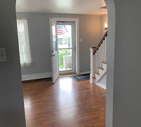 COZY AND CHARMING! Central Air! Pretty and bright cape for you to move right in! Freshly painted; kitchen appliances 6 mos. old and W/D 1 year old. New water heater being installed. Enjoy the deck w/ auto-retractable awing. Walk in shower in 1st floor bathroom. Carpet in 1st floor bedrooms installed w/in last 8 months. New man door for basement entrance. 1 car garage which may fit 2 small cars (note, no formal ceiling in garage to protect against fumes rising to main floor). Laundry hookups for stackables on main floor and hookups in basement. Second floor could be 2 bedrooms. Each side has 2 closets and windows. Nice, quiet neighborhood. Sewer is compliant. Offers being presented to Sellers 7/22/21, 12:30 PM.