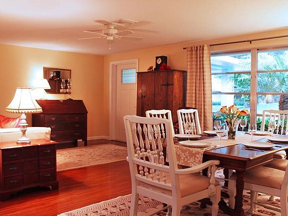Financing fell through for buyer. This beautiful home is back on the market. What a beautiful home that feels like you are in a garden oasis. The huge oak trees and the lushous landscaping are just some of the wonderful features of this home and its location. A new roof, a new A/C, a new septic field, new plumbing, completely redone on the inside just to name a few of the pluses of this house. When you walk in, you will see floors that are stunning. The family room boasts a fireplace and bookshelves to give it a cozy feel. The kitchen is bright with solid stone counters and beautiful light cabnitery. The master bathroom feels like a spa with the woodgrain tile and glass doors of shower. The other special thing about this location is that South Venice has their own community boat dock and ferry over to Caspersain Beach. What more could you ask for at this price.