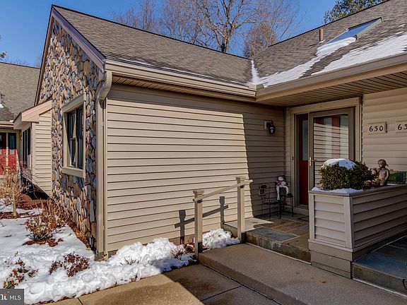 This Glenwood unit is full of natural light, updated finishes, and stunning architectural details making it a real stand out property in coveted Hershey's Mill community. Lovely and spacious, this townhome features an open floor plan, vaulted ceilings, sky lights, bamboo flooring throughout most of the main level, and extra living space plus bonus rooms in the finished basement. Millwork details grace the foyer with beautiful wainscoting and wide baseboards that continue through the formal rooms. A substantial sunny living room with soaring ceilings, sky lights and handsome wood-burning fireplace opens to the large and airy formal dining area with a chandelier and tray ceiling detail. This leads into a bright and cozy sunroom/den addition. The updated kitchen has granite countertops, peninsula with seating, and a breakfast area with access to the private outdoor patio. There is a full hall bathroom and laundry room with new washer and dryer on the main level, as well as two considerable bedrooms, one of which is a true master suite complete with a beautifully updated full bathroom, two closets including a CA style walk-in, a window bench, and fresh plush carpeting. The second bedroom also features a charming window bench with storage and custom flanking book shelves, fresh carpeting, and a nice-sized closet.Downstairs is a finished basement with a main living space, and two bonus rooms, as well as semi-finished work room and another full bathroom. One of the bonus rooms is currently used as a guest suite. There is a sprinkler system in the lower level. A spacious storage room/workshop has a vinyl floor and painted block walls. It could easily be finished for additional living space. Many newer appliance updates include: tri-door stainless refrigerator, dishwasher, the HVAC system and water heater. Like to lock up and leave? Or is it time for someone else to do the work for you? Enjoy an engaging social life and all the amenities that this pristine 55+ gated community has to offer -- including an 18-hole championship golf course, a handsome clubhouse, pools, tennis courts, and even pickleball. Walking trails, ponds, and creeks attract wildlife for your delight. There is 24-hour on-site security,landscaping/lawn care, and snow removal all the way to your front door. The HOA fee also includes exterior maintenance, basic cable, internet, land phone line, trash, sewer and water. Plus the location is easily accessible to many major arteries, shopping, restaurants, public transportation, hospitals and airports. The Hershey's Mill Golf Club offers a free one-year social membership to new owners.