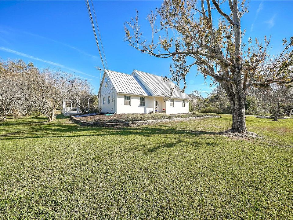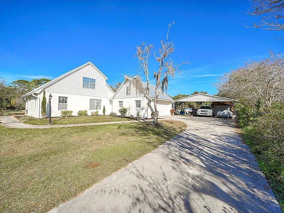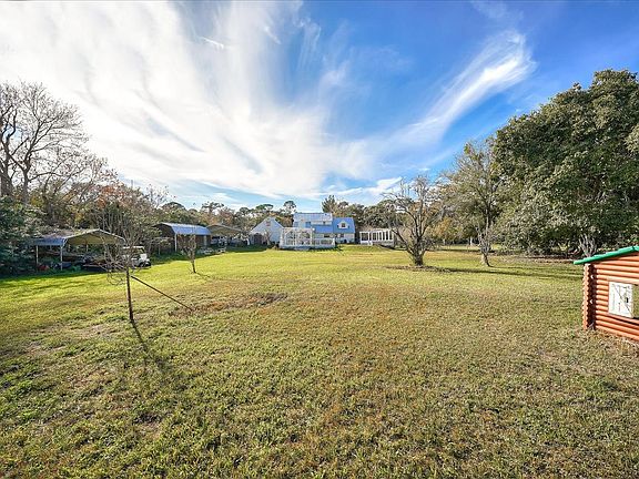 Cape cod style located in Historic Town of Melbourne Village, this is a 2350 sq ft, 5 bedroom, 2 bath farm style home set on a Acre plus of land. The estate includes backyard fruit trees and blackberry bushes. It has it's own private artesian deep well, 3 Outbuildings, Large Shed, Small House Shed, and 12x32ft Barn wired for power & has AC complete with Double lofts! One extra wide three-car plus Carport built with High Roof line. The attached Garage holds additional 2 Cars plus. Drive into back yard to store any boats or RVs. in the additional backyard 2-car carport. The Garage is wired and plumbed with Washer and Dryer. The house currently has Refrigerator, Wine Cooler, Range and another 36 inch Cooktop & Two Microwaves and two high-end Dishwashers. Perfect for entertaining. All appliances in Kitchen are Stainless Steel. Yes, you can also entertain outside of this house if you want. There are two massive Decks in backyard made from white recycled plastic for longevity. One of them has 40-yr-old Grapevines hanging over a Pergula. One deck 16 x 32 the other is 12 x 40 . Behind the house is a large fenced backyard, some parkland and a canal. Five Bedrooms are in this House, A Formal Living Room, Dining room and Library Entertainment Room complete with Wood burning fire place. The insulation level in the house is R100. Installed Brand new in 2018 are two new zone AC units and air handlers, and a brand new 2018 Metal Roof Standing Seam 26 gauge. The electrical panel has been replaced in 2018, and over 85 % of the plumbing was replaced. The electric bill on this house is around $250 monthly. Property taxes are currently at $3100 annually. The backyard is fenced and the location is zoned for chickens and goats if you are so inclined. The earth is black with earthworms. You can have a garden or grow anything you desire. A pair of nesting bald eagles live across the street and they fly over the house multiple times per day. This home is ideal for a home-based business, homesteading, independent style or close to off the grid living. The Optional membership with American Homesteading Foundation has a one-time fee of $2000 and yearly $125 which gives you community events and membership with community pool, over 85 acres of parks and paths. AHF Requires proof of 10% Down. 24/7 Police Department is about three houses away on the same picturesque street. Walking distance to movies and malls and shopping, yet very rural tree-covered bird sanctuary. Live in Melbourne Village - an oasis! and Close to Major Engineering firms and the Space coast.
