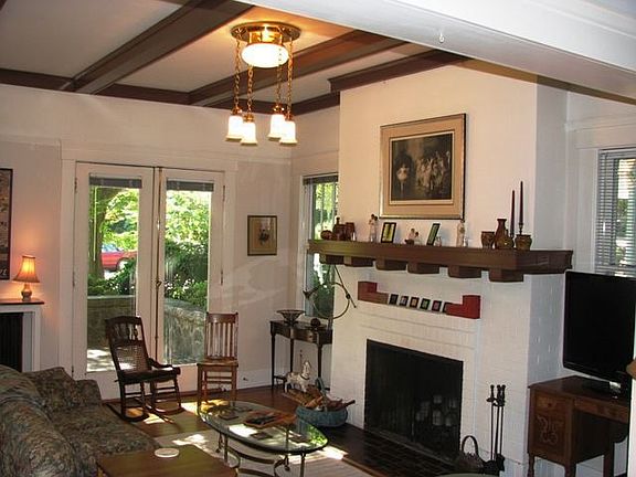 630 Linwood Avenue A. Brand New Rental Listing - June 2nd! This Arts and Crafts period home has two bedrooms, two baths plus an office and den. High ceilings, large rooms, huge windows, heavy moldings, hardwood floors throughout, boxed beam ceilings, decorative fireplaces, and more. There is a full basement for additional storage. There is a rocking chair front porch, two back decks and a great yard - adjacent to Freedom Parkway. This unit is the larger portion of a duplex. This unit is roughly 2,100 square feet. Shared utility situation (ask agent!)Unit A - Large living room with fireplace with inlaid oak floors - Banquet sized dining room with fireplace, bishops paneling and a wall of windows - Breakfast room adjacent to dining and kitchen with walk-in pantry, tiled counters, black appliances and breakfast bar area. - Den with office nook opens to kitchen and out to a private back deck - Master bedroom has vaulted ceiling with skylights - Master bath with double vanities, tub/shower combination, built-in storage and original white hex-tile floor - Sizeable guest bedroom and hall bath with walk-in shower - Upstairs loft/office with skylights and amazing views