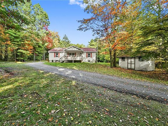 Pocono Countryside Ranch Just Under 4 Miles To Central Brodheadsville! Built-In 2015 This Single Story Home Offers 3 Bedrooms, 2 Full Baths & Full Unfinished Basement w/ Separate Entrance To Create The Space You Desire. Primary Bedroom Suite Features Walk-In Closet & Full Bath With Makeup Vanity. Situated On 2.54 Acre Peaceful Tree-Lined Parcel Featuring Long Private Driveway w/ Ample Parking, Expansive Covered Patio Or Parking Pad Plus Detached 700 SqFt Garage & Workshop Combo. Multiple Heat Sources Along With Central AC. Covered Front Porch For Your Comfort & Relaxation Offer Beautiful Wooded Scenery! No HOA Fees & Total Taxes At $5200/Year. Central Location Positioned Close To Shopping, Dining, Hospitals & More. Everyone Loves A Ranch!