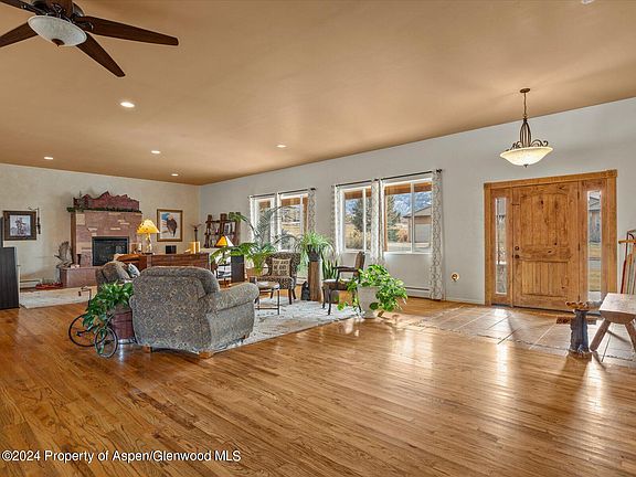 This impeccably maintained ranch style home offers stunning views in every direction and is situated across the street from the17th fairway of Battlement Mesa's championship golf course. Nestled on a spacious lot this home boasts 4 bedrooms, 2 baths and a 3 car garage with a custom work bench. The open concept will ''wow'' you and is perfect for entertaining as well as everyday living and includes immaculate hard wood floors, a gas fireplace and brand new alder doors throughout. The kitchen features newly refinished cabinets and hardware, a 5 burner gas range, brand new Bosch dishwasher, a walk-in pantry and tons of storage and counter space making it perfect for culinary enthusiasts. The Primary bedroom has a spacious bonus room, a huge walk-in closet with a custom shoe rack and the updated 5 piece bathroom was completed in 2023 including new walk-in shower, custom tile, glass, soaking tub, all complimented by new sinks, paint and lighting. Additionally there is an updated guest bath and a new hot water heater. The home comes with a 5-year roof certification and features new front landscaping.The backyard has a newer split rail fence to capture the amazing views! Come take a look at all the amazing features this
