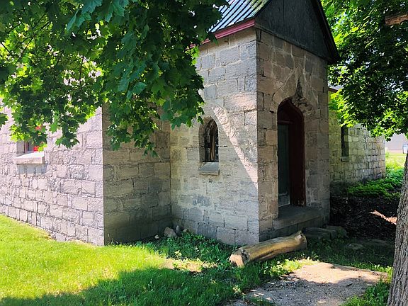 This is your unique chance to own your own church! This old stone building has amazing character which could be made into your dream home, rental property or Airbnb! It features tall glass windows, vaulted ceiling and its own wooden platform. Call today for a showing!