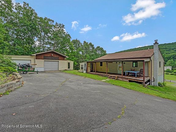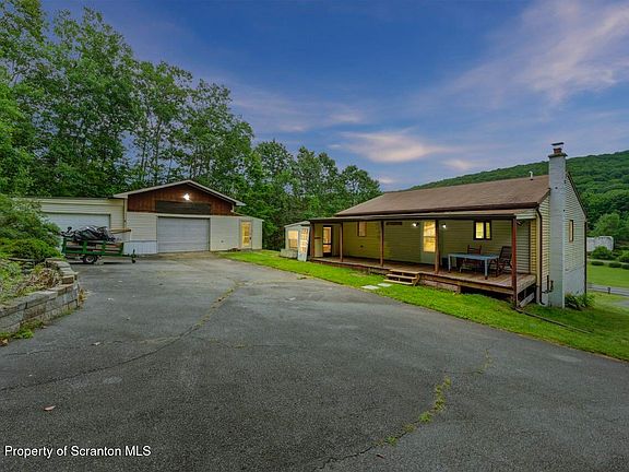 Want your privacy but be centrally located?Needs some TLC but gives you the opportunity to add your personal touches and increase your investment. This 2 bed, 1.5 bath raised ranch sits back from the road on 1.03 acres in the Abington Heights School District. You will enjoy the open floor plan with an eat-in kitchen, living room, 2 beds and a full bath. There is a semi-finished basement with a 1/2 bath that can add to your living space.Both the sunroom and back porch offers a place to relax. Heated two car garage in the back with additional storage space and another one car garage in the front. Full house generator.House is sold ''as is'' with buyer having the right to conduct a home inspection for their own knowledge.